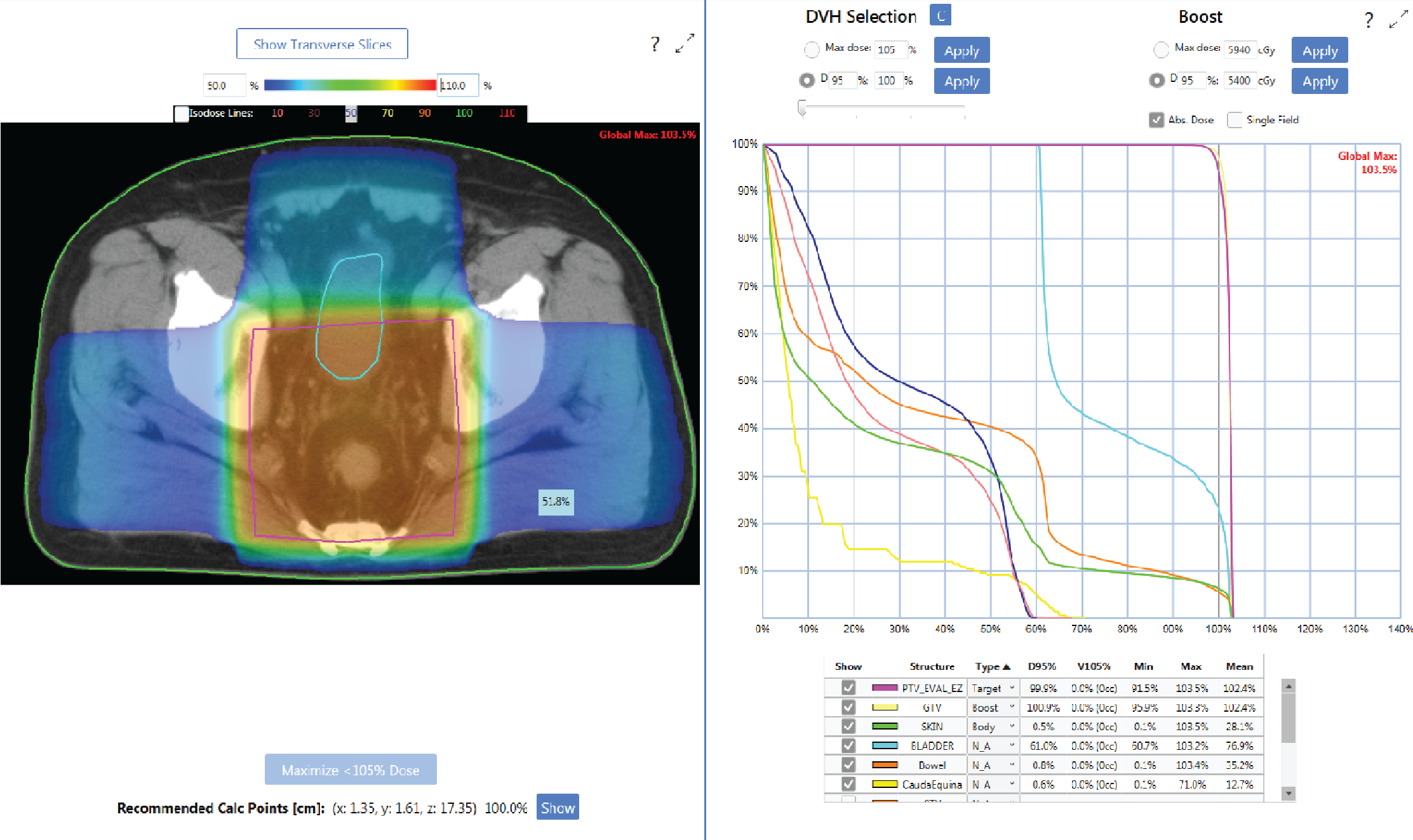 For clinics following RTOG 1005, EZFluence allows the user to boost coverage to lumpectomy volumes. Instantly plan integrated boost plans.